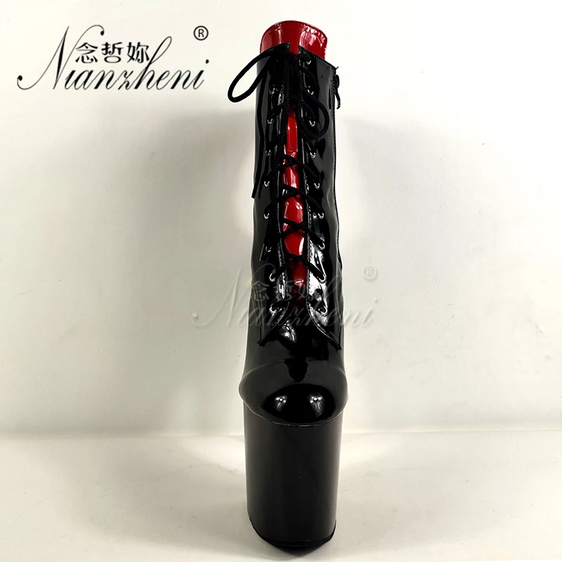 20cm Pole Dance Shoes Platform Sexy Women Stripper Ankle Boots 8 Inch High Heels Fashion Gothic Fetish Queen Black Lacing Red