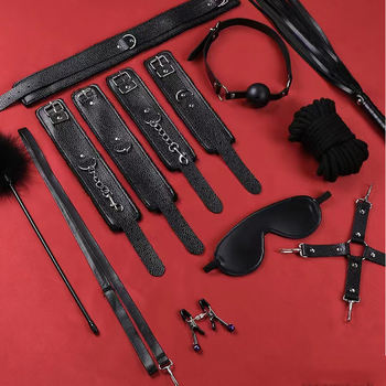 10pcs BDSM Leather Kits Sex Bondage Set Collar Handcuffs Gag Whip Nipple Rope Clamps Erotic Sex Toys for Women Couples Adult