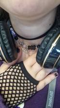 Cool choker. Mermaid tape. It's a little big for me, but it seems that you can bend the fasteners and cut off the extra part.