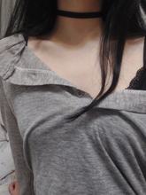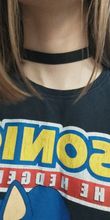 Very beautiful chocker, on the same side ordinary fabric, on the other-velvet. The chocker is adjustable, the neck looks good
