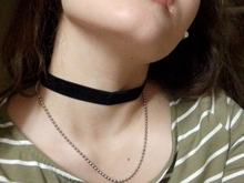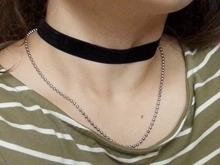 I order a similar velor choker for the third time. The quality is good, the skin feels good, it does not prick. There is an adjustable closure on the back, which is convenient. Happy with everything!
