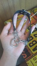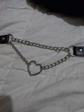 this was a cute little choker I bought for my spouce, the picture appears to show that the center chain in one continuous loop used for "kinky" activities. Ideally you would pull on the cain and it would constrict the collar by closing the gap between the D rings, when it arrived I found that infact I was mistaken and there are 2 separate chains each Attached to the D ring on either side, so this will be a cute necklace but not perform the intended way. At an inexpensive price it wasn't too upsetting of a loss. I'll just try to order the correct type and be more thorough examining the product pictures and description.