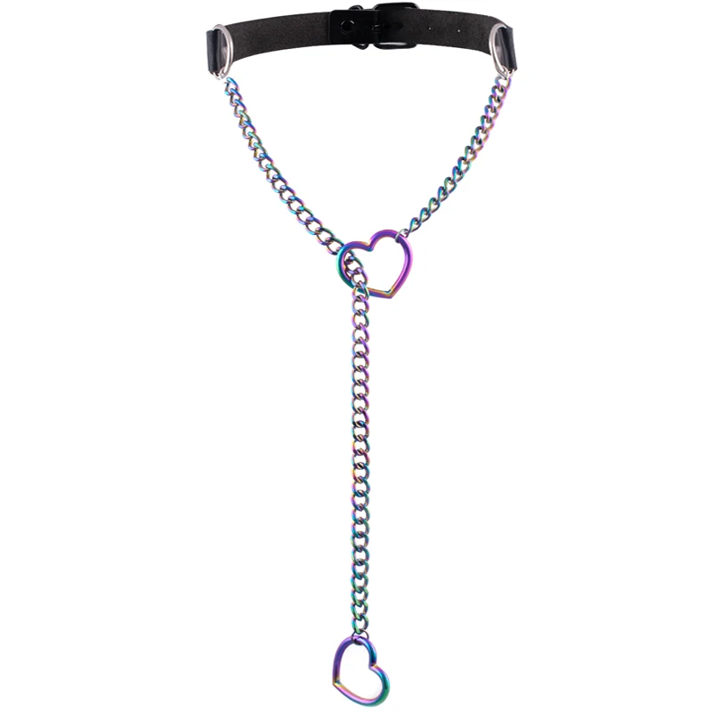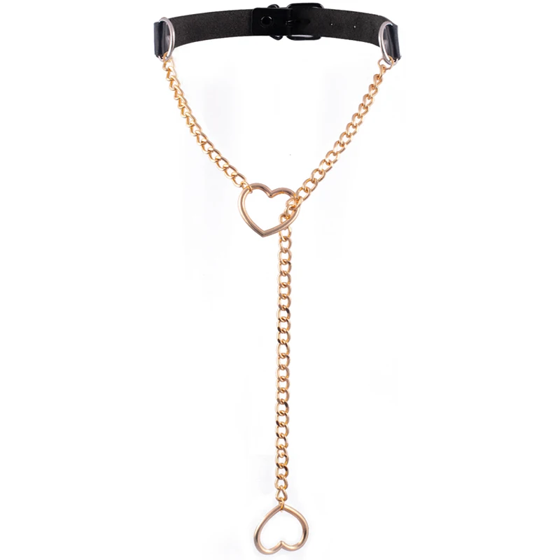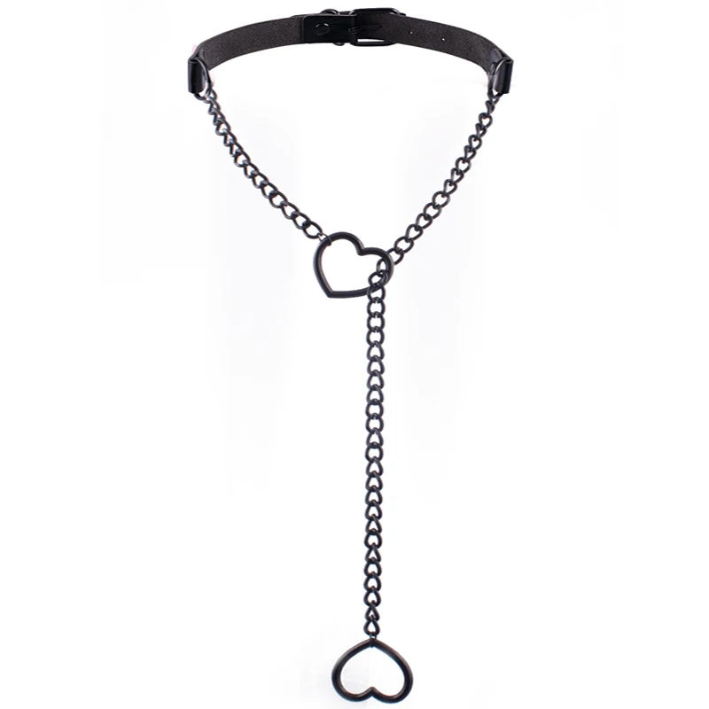 Heart Slip Chain Necklace Black leather Choker Collar For Women Goth Accessories Punk Gothic Jewelry