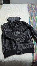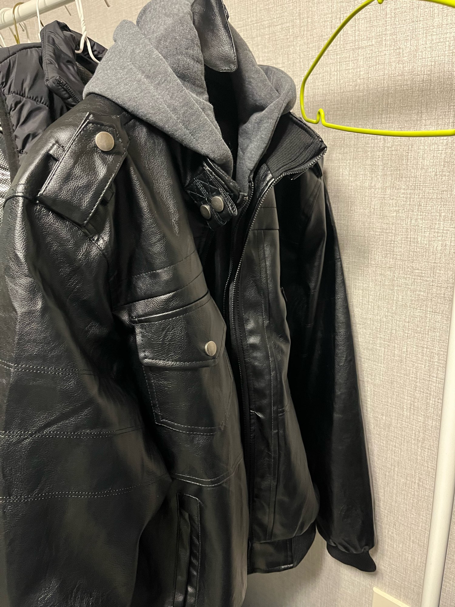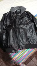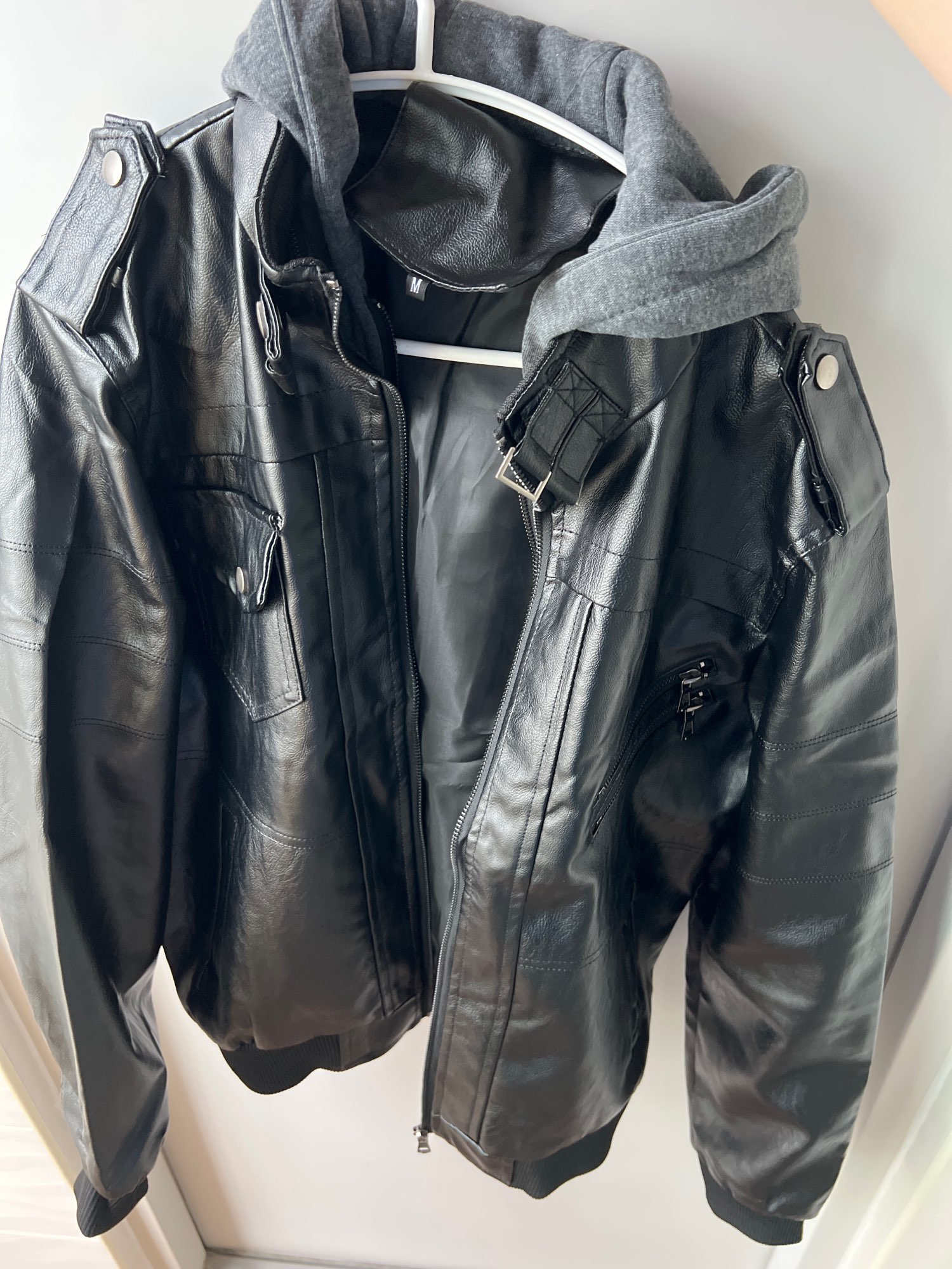 The jacket is great!!! My height is 171cm, weight 75kg, took size M, fits me perfectly. Leather not leather, I can't download it, I don't understand it, but the quality is excellent. Thanks to the seller!