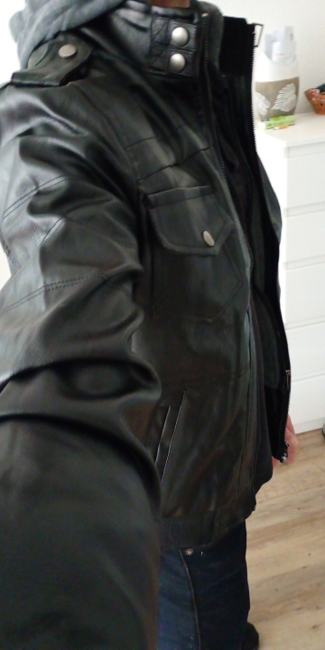 It has a good appearance. I liked the fact that it simulates another garment under the leather jacket.