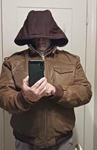 Second jacket from this store, brown color is not as deep as pictured. Good quality for the price. Get your regular size, xl=xl.