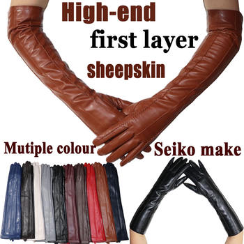 High-end Long Leather Gloves Women’s,Leather Sleeve Arm Covers, Winter Warm Thick and Thin Driving Touch Screen Sheepskin Gloves
