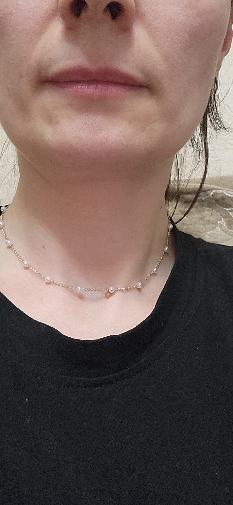 This necklace is very cute, although the pearl part is a bit delicate, it looks pretty, I recommend it for its price!