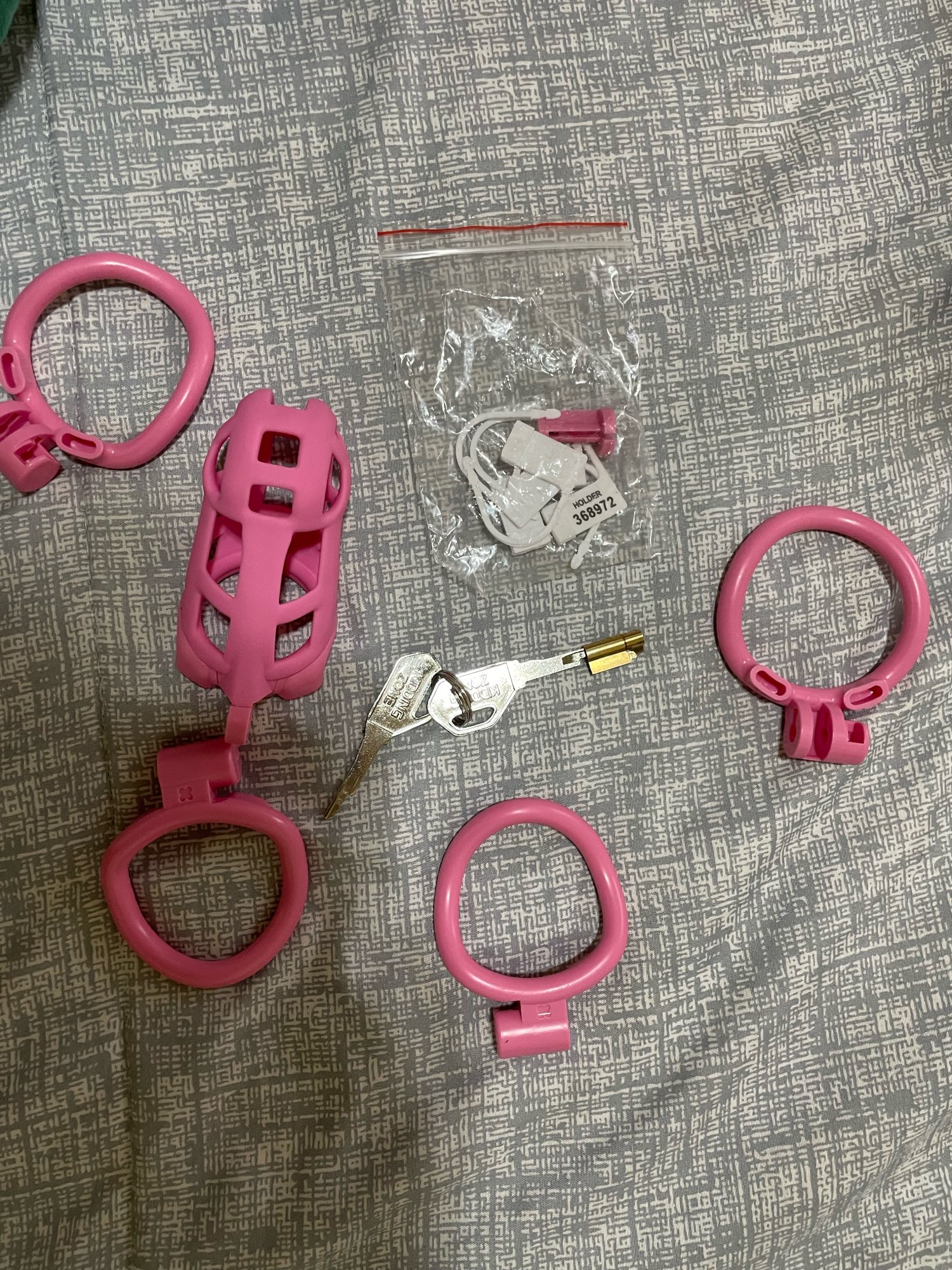 Everything about it is perfect! It’s a little tight around the testicles, but i’m sure i’ll get used to it over time. I chose the smallest size in pink — it looks adorable when worn and fits really well overall. Mine also came with sealing tags, which was definitely a nice bonus!