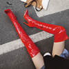 Sgesvier New Winter Glossy Black Red Women Thigh High Boots Sexy Lady Dance Pole Shoes Thin High Heel Over The Knee Boots G765