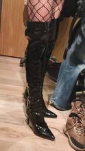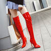 Sgesvier New Winter Glossy Black Red Women Thigh High Boots Sexy Lady Dance Pole Shoes Thin High Heel Over The Knee Boots G765