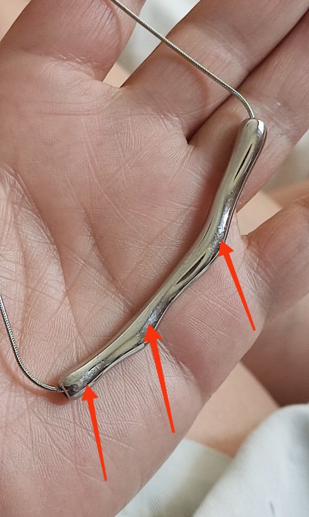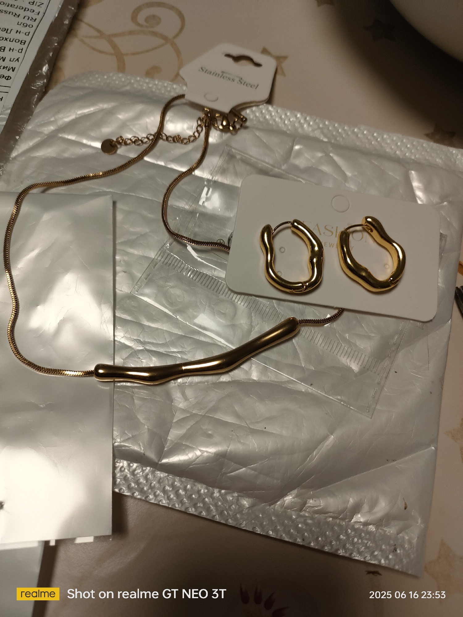 The parcel arrived before the specified time. The necklace looks decent, without flaws and scratches, I will wear it in everyday life and on the way out. Like the design very much.